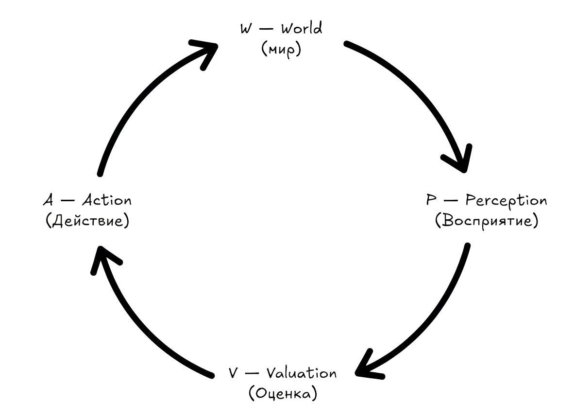 W — World (Мир): Это событие-триггер. Внешний (вам сделали комплимент) или внутренний (вы вспомнили свой успех).